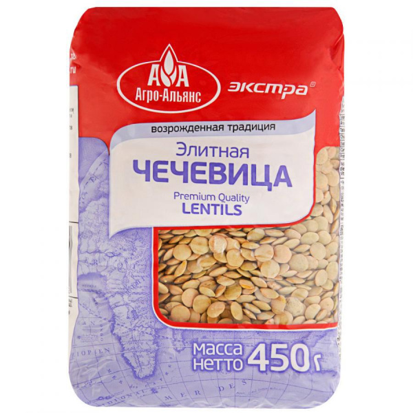 Крупа АГРО-АЛЬЯНС Чечевица элитная 450г п/пак/8