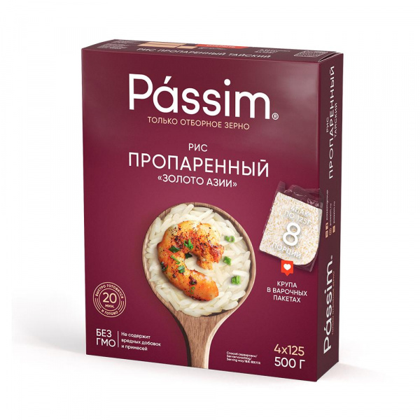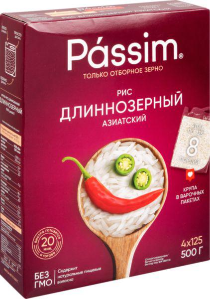 Крупа ПАССИМ Рис длиннозерный Азиатский 4*125г к/кор/9