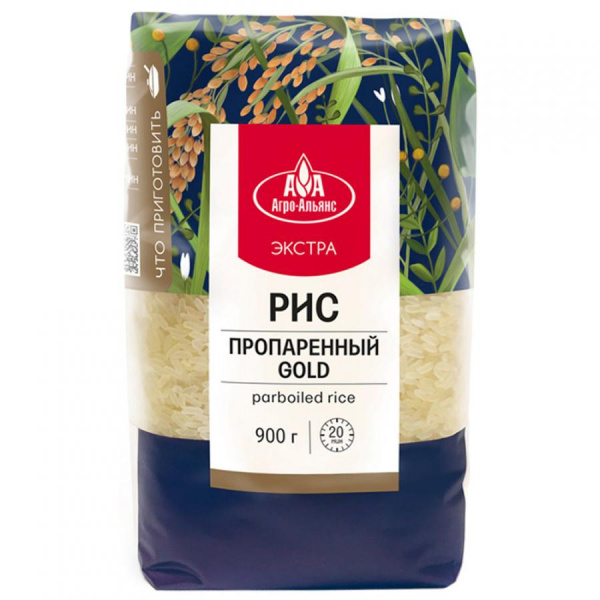 Крупа АГРО-АЛЬЯНС Рис элитный пропаренный 900г п/пак/12