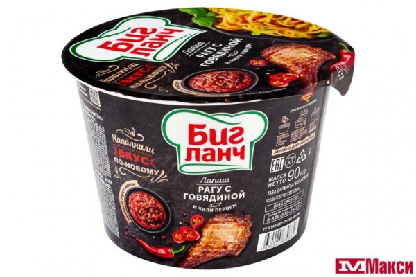 Лапша б/п Биг Ланч Рагу с говядиной и чили перцем 90г пл/ст/24