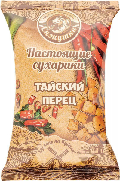 Сухарики СНЭКУШКИ 80г пшеничные тайский перец пакет/16