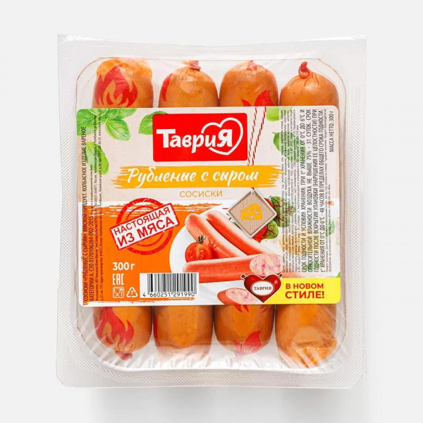 Сосиски Таврия Рубленные с сыром 300г газ/уп/6