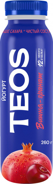 Йогурт питьевой TEOS Актив Вишня-гранат 1,8% 260г пл/бут/6/БЗМЖ