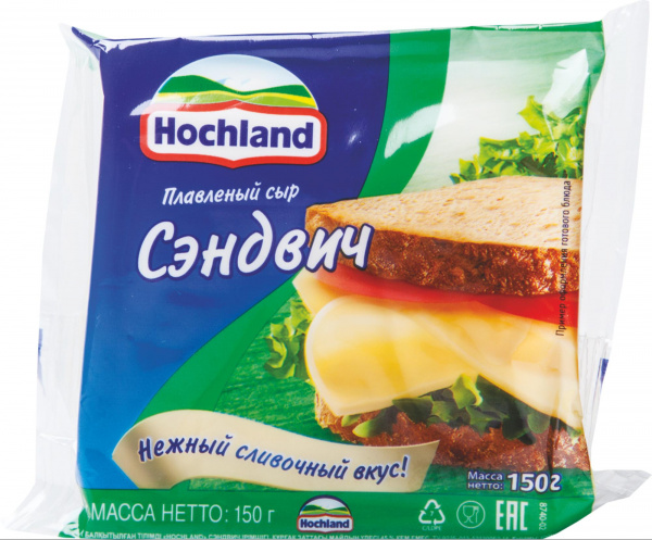 Сыр плавленый Хохланд Сэндвич 150г нарезка/9/БЗМЖ