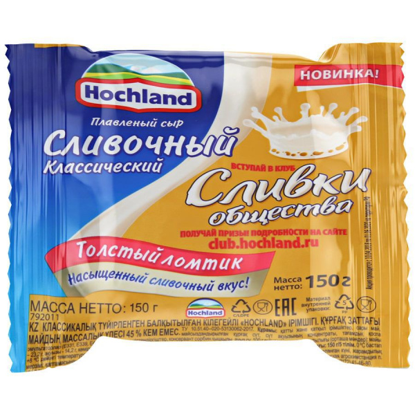 Сыр плавленый Хохланд Сливочный 150г нарезка/9/БЗМЖ