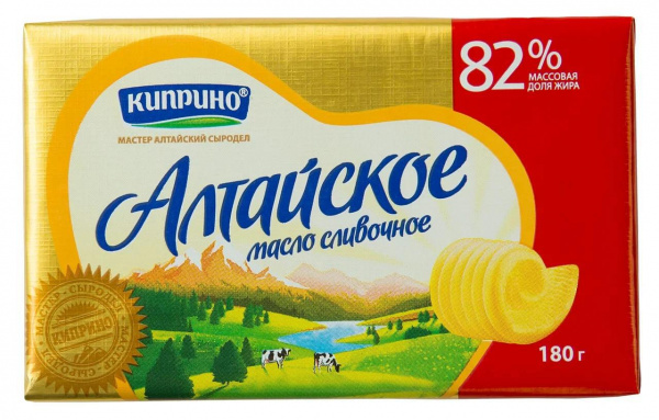 Масло сливочное Киприно Алтайское 82%, 180г фольга/12/БЗМЖ
