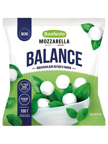 Сыр Моцарелла Бомфесто MINI BALANCE мягкий 30% 100г с рассолом 250г дой-пак/6/БЗМЖ