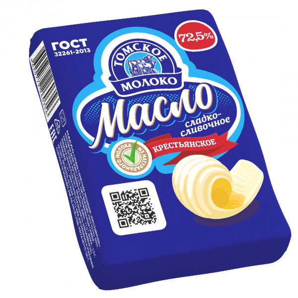 Масло сливочное Томское молоко 72,5% 180г фольга/40/БЗМЖ
