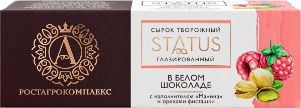 Сырок глазированный А.Ростагрокомплекс STATUS в белом шоколаде малина фисташки 26% 50г карт/уп/6/БЗМ