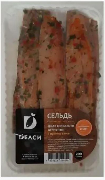 Рыба Сельдь холодного копчения с пряностями филе 200г/вакуум уп-ка/8/Делси