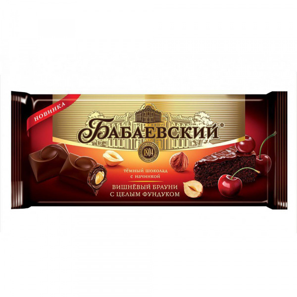 Шоколад Бабаевский темный с начинкой вишневый брауни и целым фундуком 165г/9