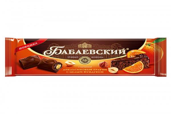 Шоколад Бабаевский темный с начинкой апельсиновый брауни и целым фундуком 165г/9