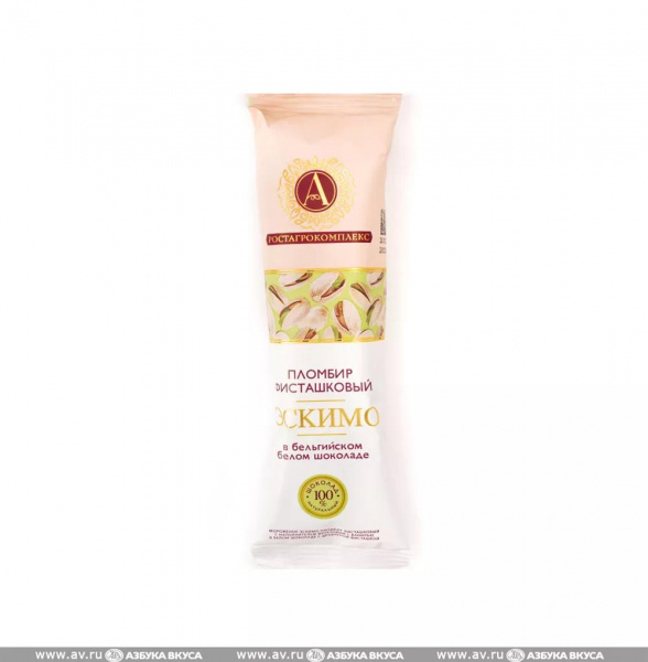 Мороженое А.Ростагрокомплекс пломбир с Ванилью и дроб. Фисташкой в белом шок. эскимо 15% 65г/20/БЗМЖ