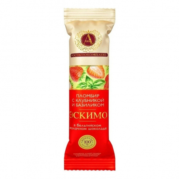 Мороженое А.Ростагрокомплекс пломбир с Клубникой и Базиликом в мол. шок. эскимо 15% 65г/20/БЗМЖ