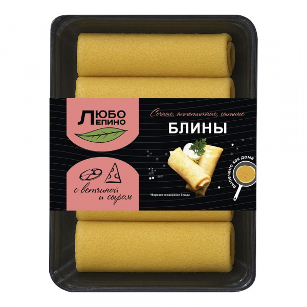 Блины Люболепино c ветчиной и сыром 410г лоток/10