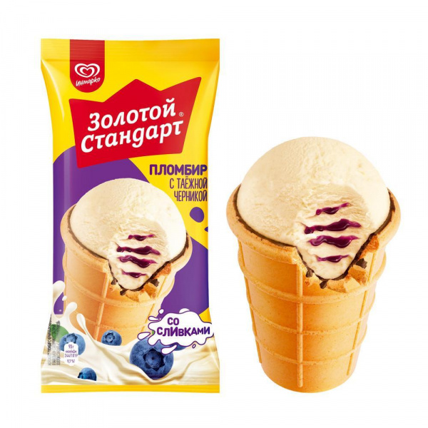 Мороженое Золотой Стандарт Пломбир Черника стаканчик 93г/24/Инмарко/БЗМЖ